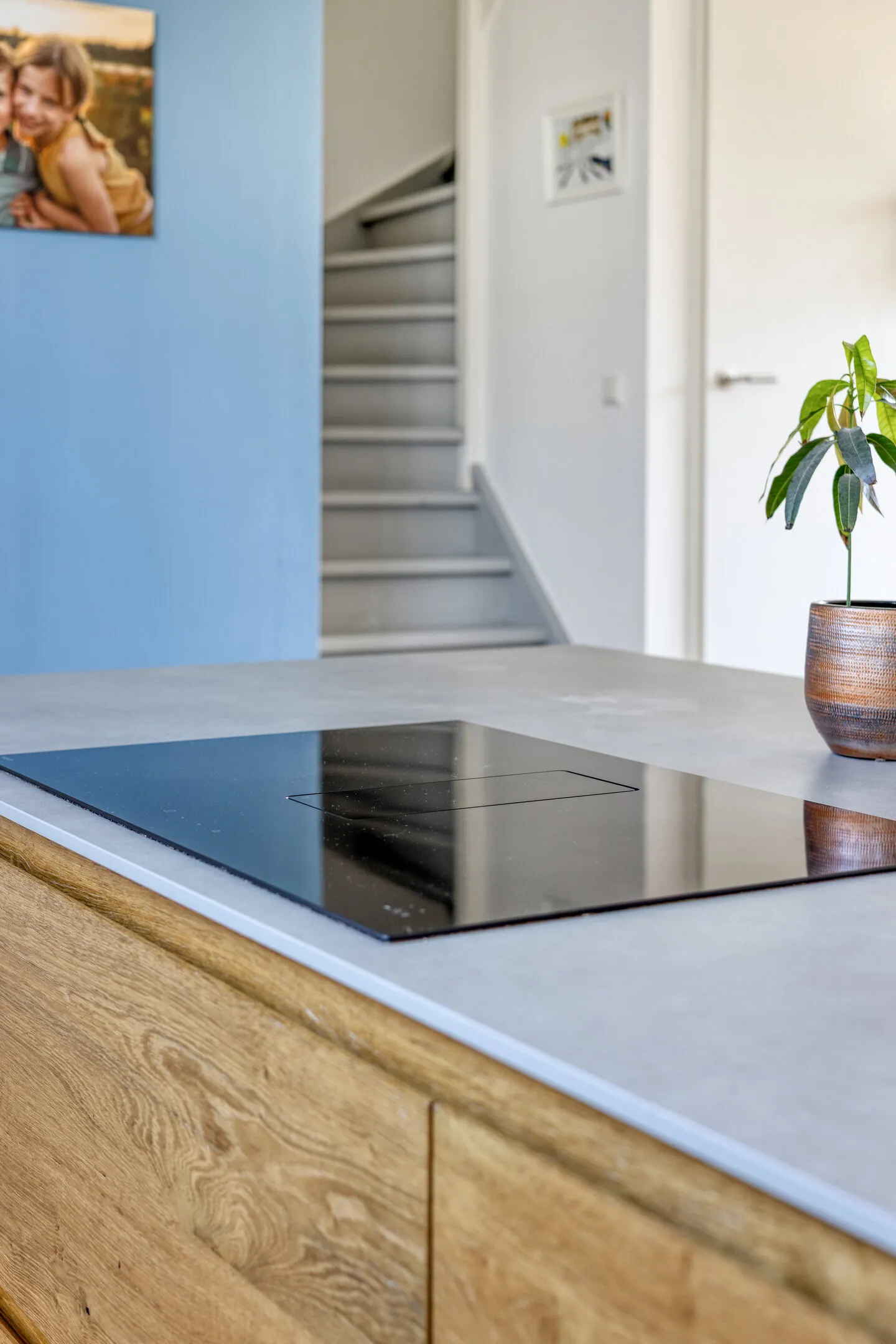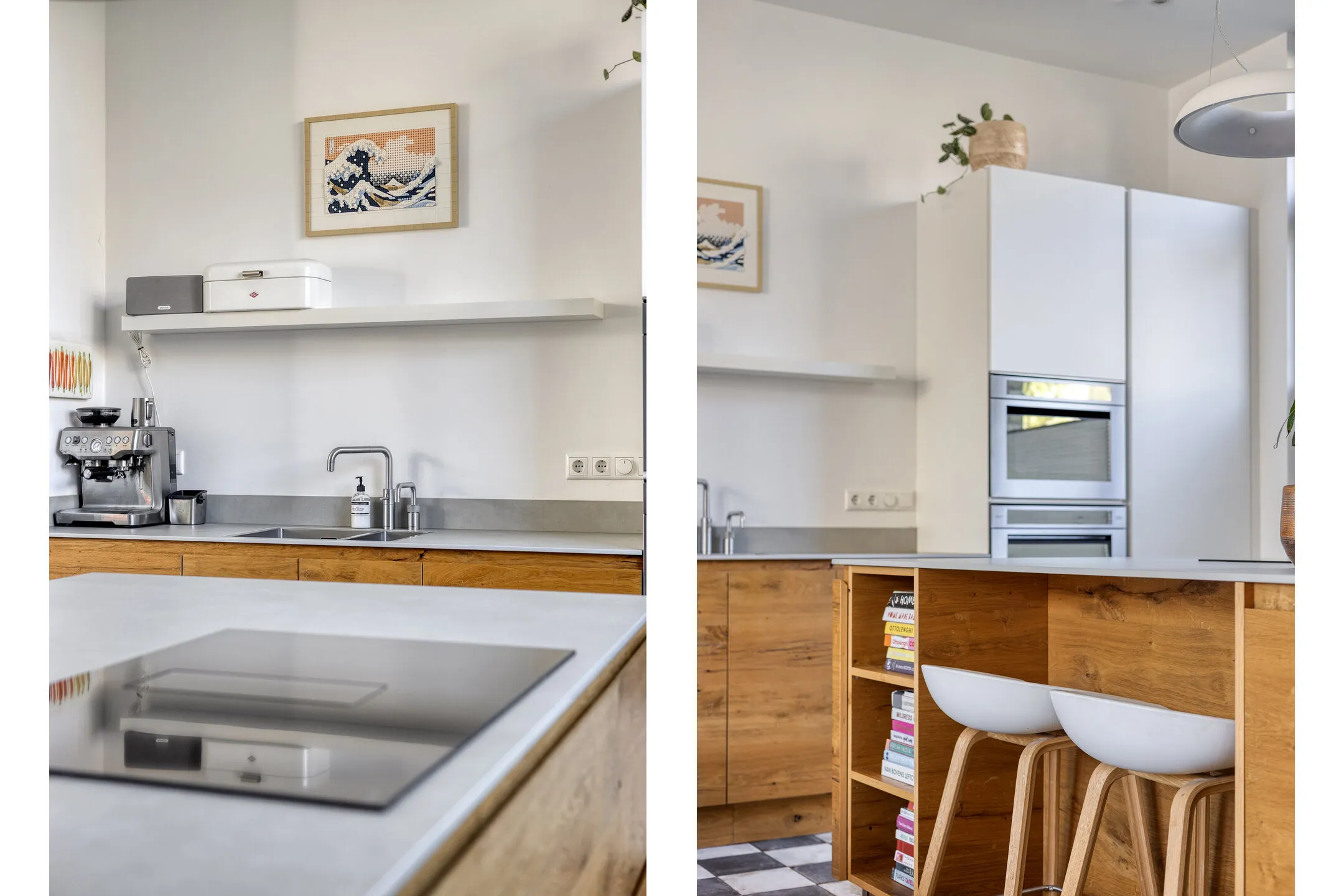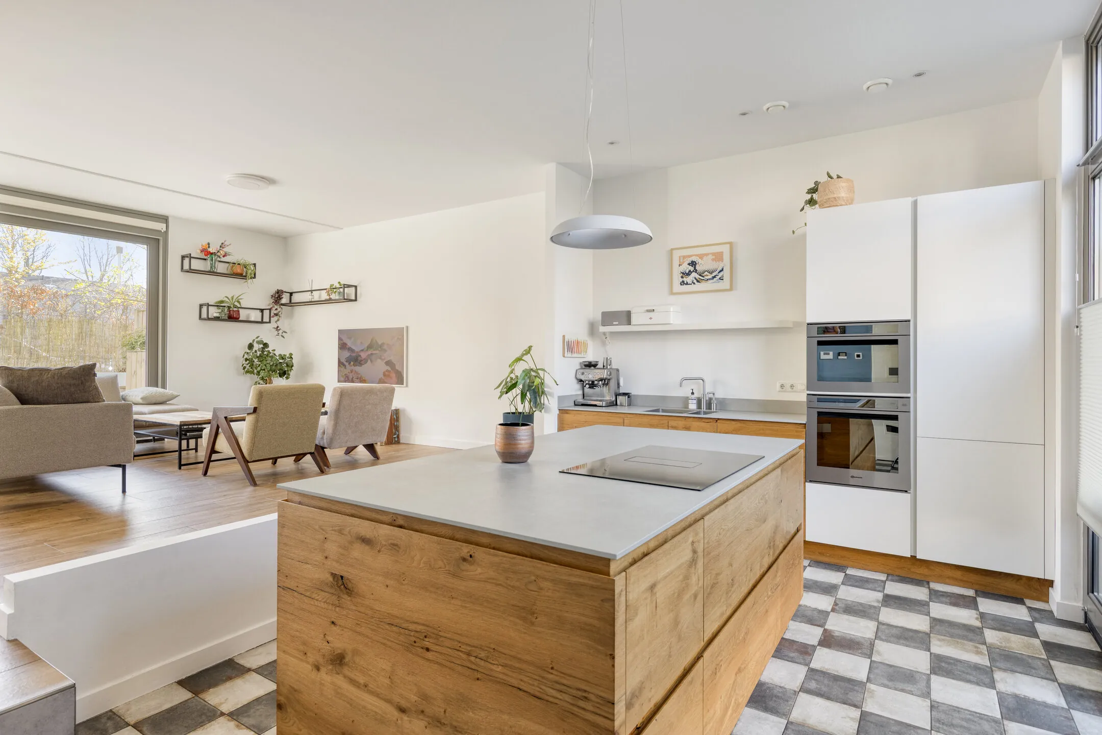 De open keuken met kookeiland en baropstelling is een echte blikvanger en dé plek waar koken en samenzijn samenkomen.
