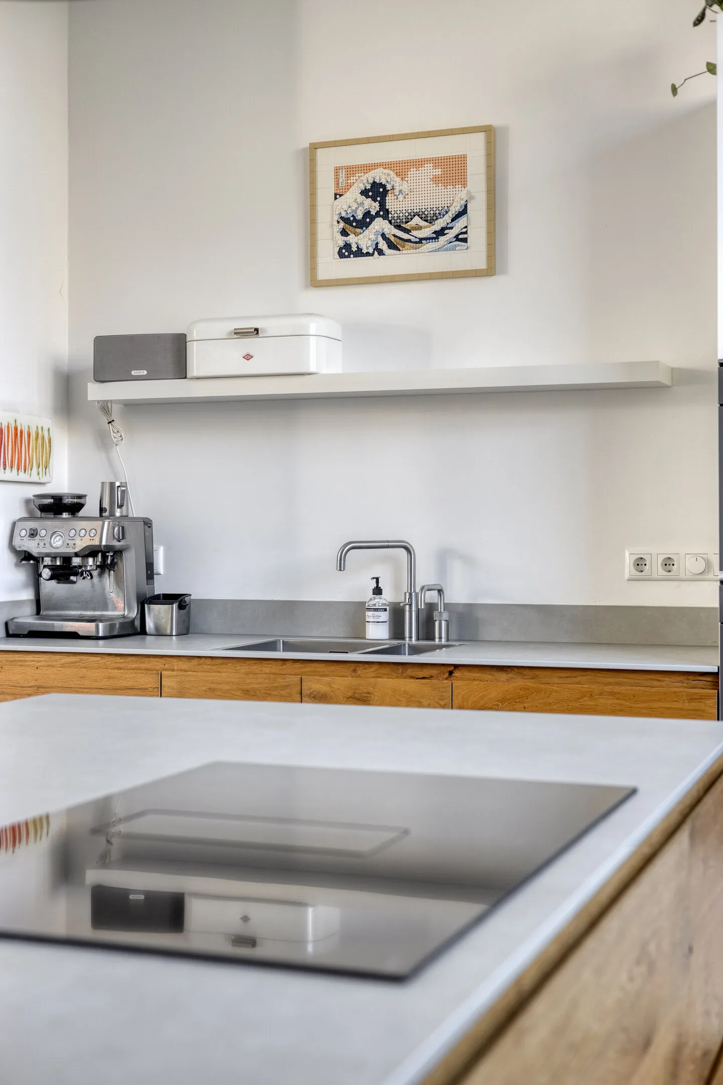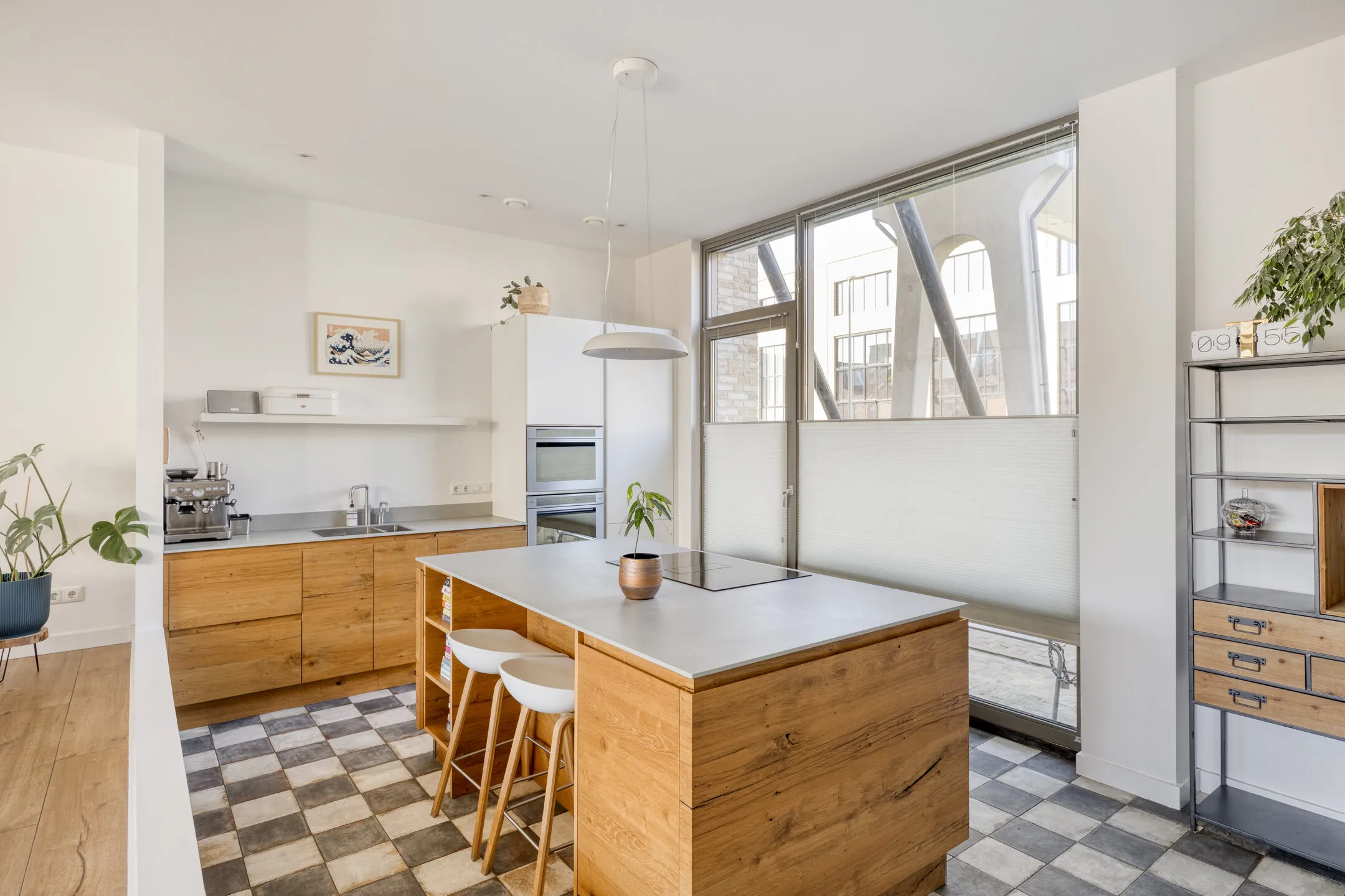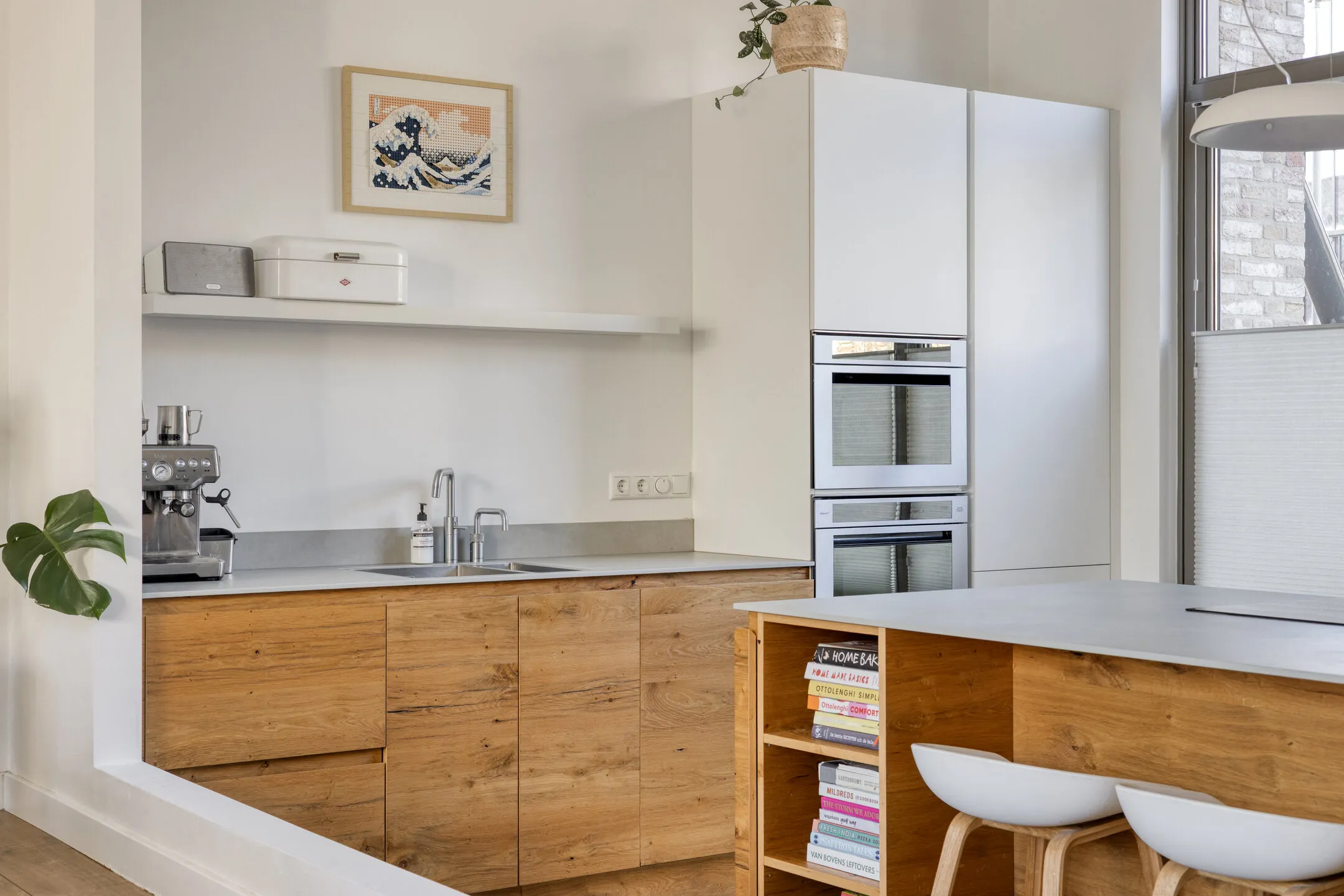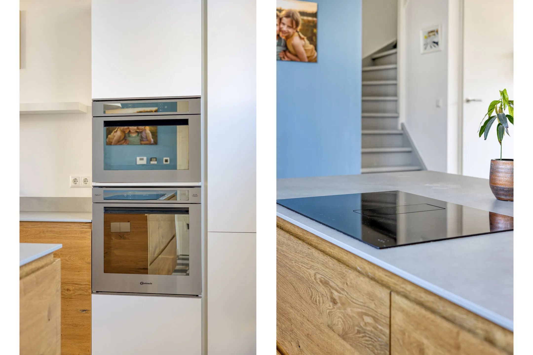 De open keuken met kookeiland en baropstelling is een echte blikvanger en dé plek waar koken en samenzijn samenkomen.