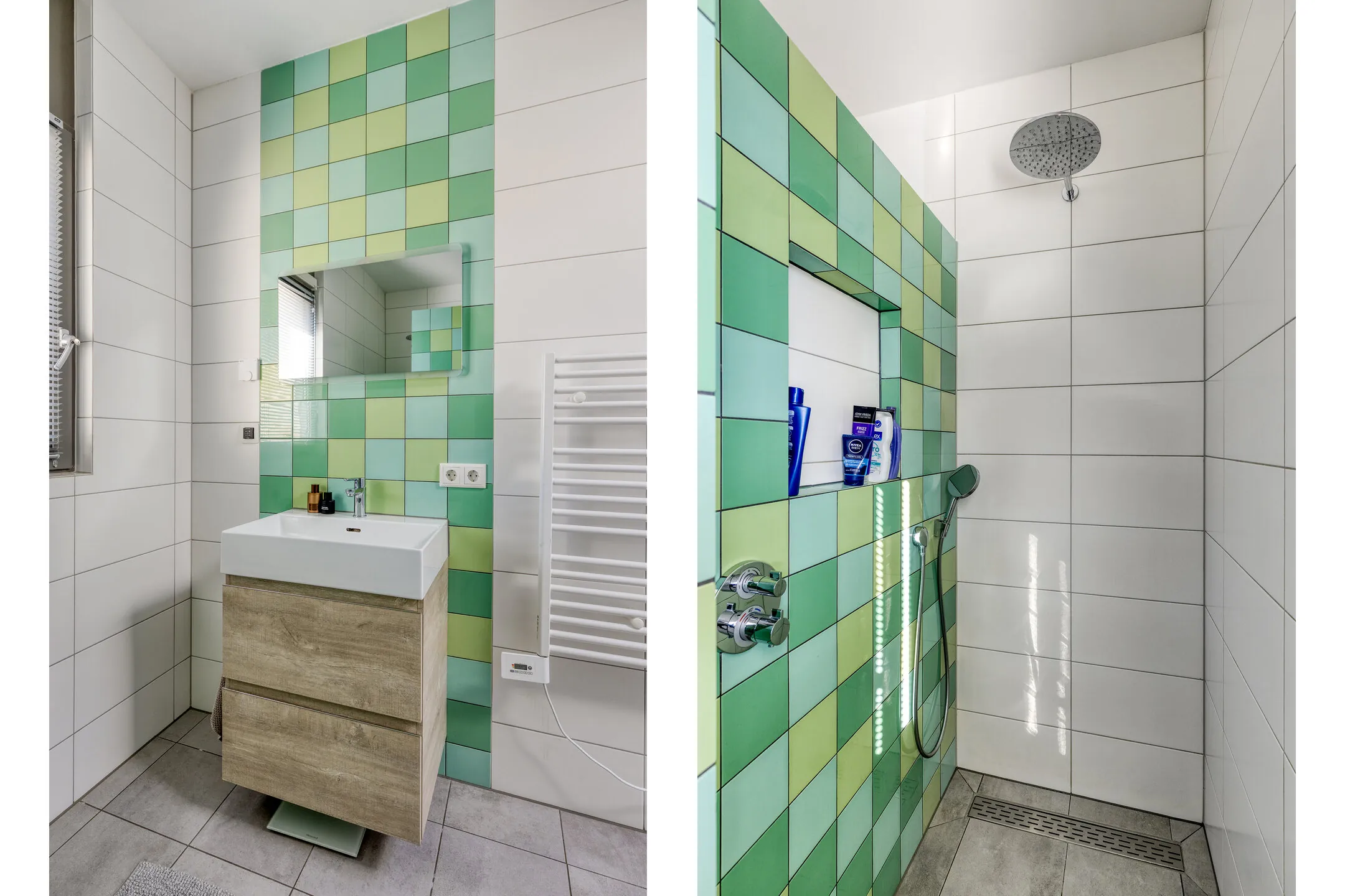De tweede verdieping biedt nog eens twee ruime slaapkamers, waarvan 1 voorzien is van een grote kastenwand met schuifdeuren. Hier vindt je ook een tweede badkamer met inloopdouche en een op maat gemaakt meubel. Daarnaast is er een separaat toilet aanwezig. In totaal beschikt de woning over drie toiletruimtes, wat zorgt voor extra comfort en gemak.
