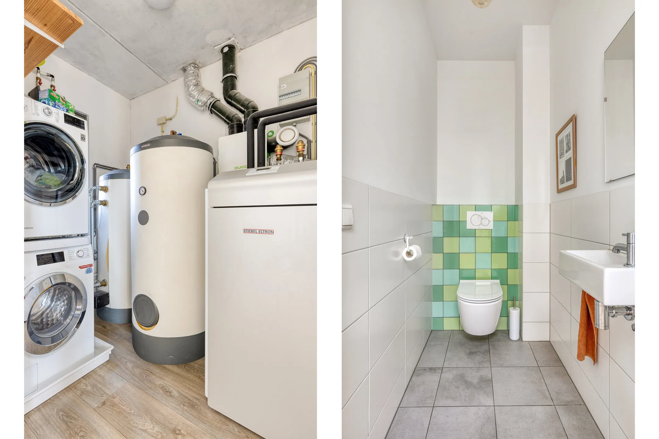 Het WKO-systeem met warmtepomp zorgt voor een aangenaam binnenklimaat, met verwarming in de winter, verkoeling in de zomer. Alle verdiepingen zijn voorzien van vloerverwarming en vloerkoeling, per ruimte afzonderlijk regelbaar.